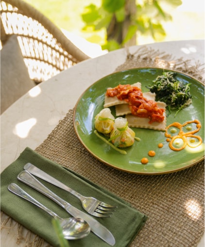 Mealtimes are shared as a group at our dining pavilion or river deck, giving you the joy of connecting with the other guests sharing the Panchakarma experience.